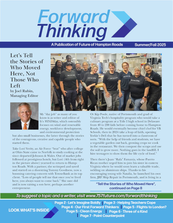 Looking for a way to help shape the future of Hampton Roads, Virginia? Have an idea for a future article for Forward Thinking? Submit the contact form and we'll be in touch shortly.